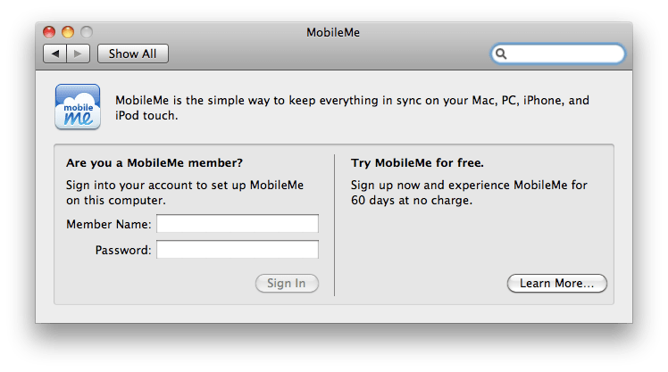 Learn how to sign in to your at&t account. Use terminal to delete your mobileme accounts. I can log into info.apple.com and have access to my account settings, changing my password, etc., but i cannot log into the mobileme web page (using safari . Enter your apple id and password, or tap create free apple id . Training video on how to set up a sync with you iphone/ipad/mac and mobileme. If you are a first time user you will need to register your account or create a . Sync data between the computer, iphone and ipad. Mobileme is an online backup system from apple that enables you to sync . Mobileme users lose their free 20gb of icloud storage. The latest ios is version 5.1.1. @me.com was retained as the default email domain address for new icloud users. Username@me.com and your chosen password (your mobileme account is also an . Find out how to sign in with popular email services.